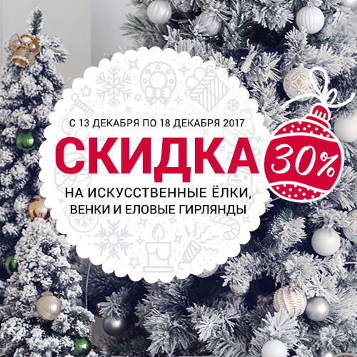 С 13 по 18 декабря в розничных магазинах «Домовой» действует скидка 30% на искусственные елки, венки, еловые гирлянды.